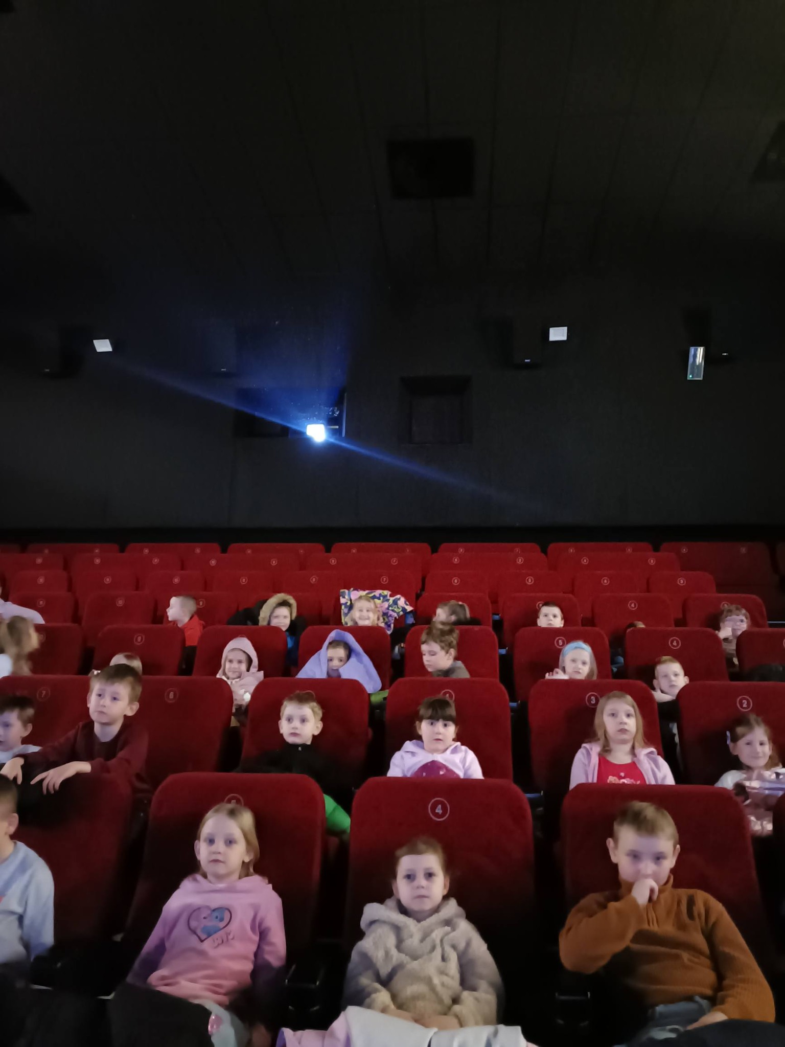 Z okazji Dnia Kobiet, dzieci z grup „Biedroneczki” i „Krasnoludki” wybrały się do kina na film pt. „Orzełek Iggy”
